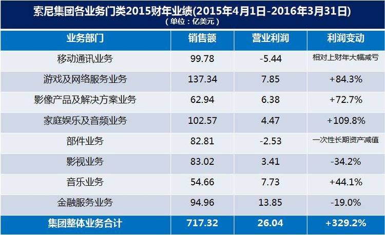如此之下,索尼开始焕发新的生机。到平井一夫改革初见成效的 2015 财年,按通用会计准则计,索尼在这一财年共实现了 81057 亿日元(717.32 亿美元)的营收,营业利润为 2942 亿日元(约合 26.04 亿美元),净利润为 1478 亿日元(约合 13.08 亿美元),而此前一年,索尼净利润为-1260 亿日元。