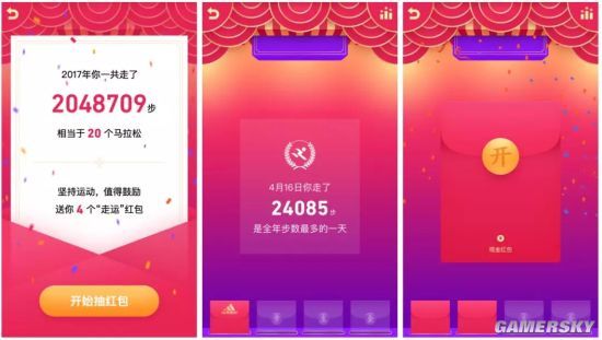 你会看到自己2017年全年在QQ运动中积累的总步数,和一份专属小总结,还能领取四个“走运红包”,为自己过去一年的健康运动点赞!