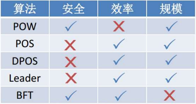 BFT是高安全高效率但规模难保证。共识机制中安全、规模和效率三者不可得兼,必须有所取舍。