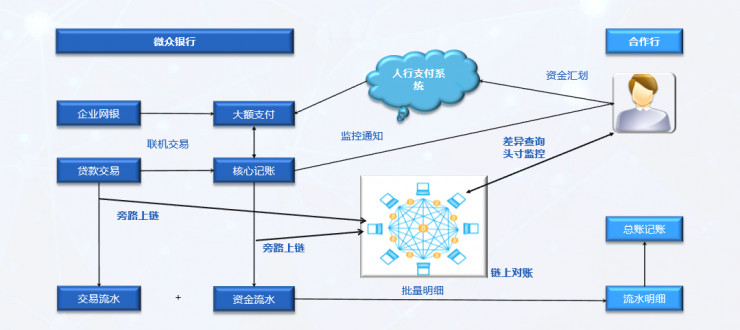 这是国内首个在金融生产环境中运行的区块链应用,目前已接入3家合作行,运行交易记录笔数已达上千万,并且上线一年多以来保持零故障运行。微众银行和合作行之间存在繁琐的账务来往,机构间通常是T+1或T+2后根据账目明细信息达成对账。我们在其中建立区块链体系,账目明细在交易过程中产生,交易流水不遗漏不混乱地实时旁路上链,实现链上对账和总账、分类账的展示。账目功能的智能合约按时间维度创建,进行数据分拆,便于维护升级。