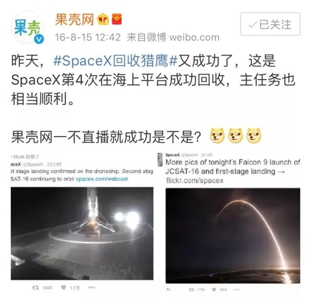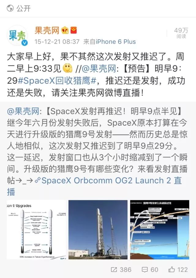 再划重点:北京时间2月7日(明天),凌晨2点,@果壳网将微博直播火箭发射过程。