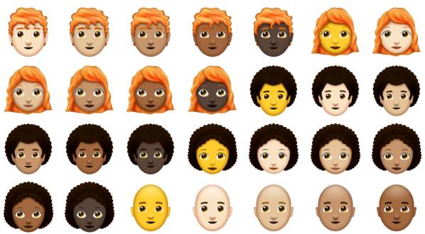 来看看这批新 emoji ,最大的变化是增加了不同的人物 emoji,包括了年轻男女、老人、以及据说会变强的秃头。