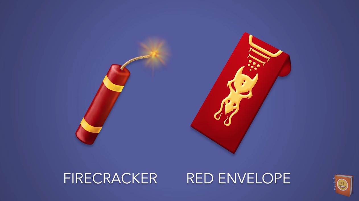 剩下的 emoji 则基本是各式各样的杂物,有板砖、肥皂、扫帚、灭火器,还有中国的算盘,以及十分应节的红包和炮竹。