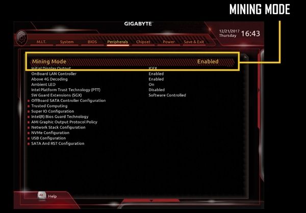 BIOS里也设置了 专门的挖矿模式,打开后会载入预定参数,优化挖矿效率。