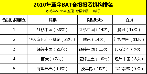 BAT合投公司排名