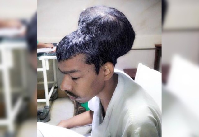 这位31岁的患者SantlalPal来自印度北部,三年前首次注意到肿瘤,但被一些医生和医院拒绝,他们告诉他没有将其切除的希望。幸运的是,他终于在孟买找到一位医生,愿意冒险尝试进行手术。因为这个肿瘤大部分长在颅骨本身之外,其中90%的肿瘤位于颅外,并且肿瘤对他的大脑施加的压力导致Pal的双眼失明,而手术是他能够继续生存下去的唯一方式。