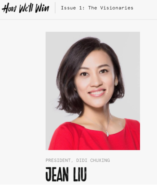 美国财经网站Quartz日前启动了为期一年的“我们将如何取胜”争取性别平等、为女性赋能的项目。在这一项目下,Quartz陆续对全球政治、商业、科技、文艺、体育等行业的女性代表进行了采访,报道她们如何为争取性别平等而努力前行,同时也邀请这些杰出代表分享她们的人生经验、对未来社会发展的洞察。其中,滴滴出行总裁柳青是项目首期采访的中国女性代表之一。Quartz称,虽然Uber创始人Travis Kalanick一向被视为商场上的强硬派,但比起他,滴滴出行的总裁柳青更令人敬佩。