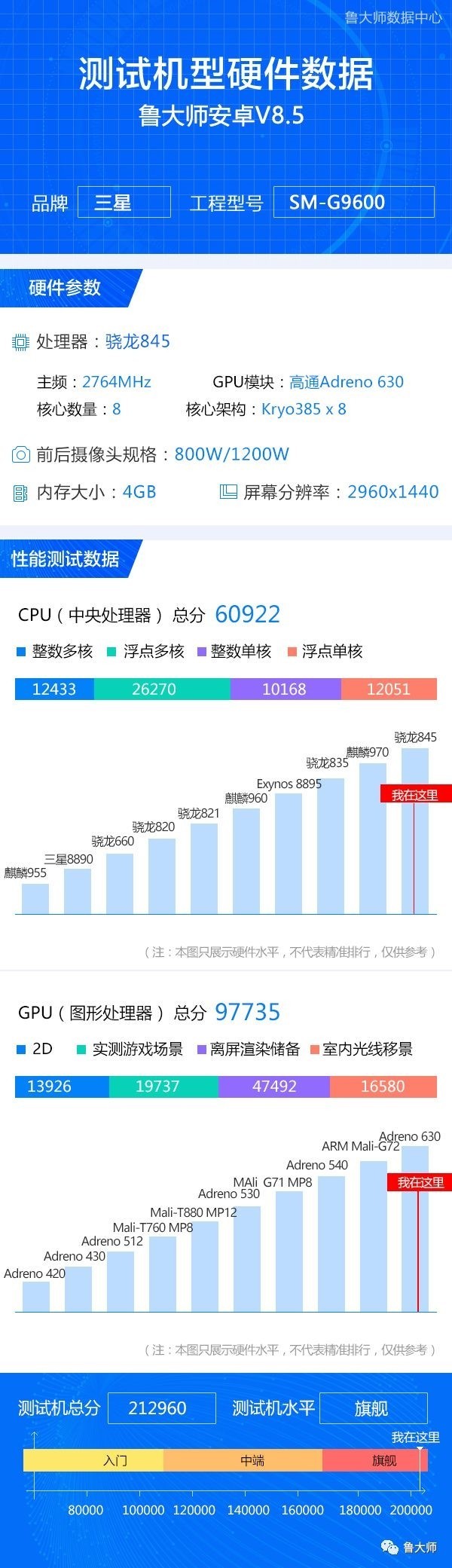 作为年度旗舰之一,三星S9可谓是面面俱到,强悍的性能、优秀的做工、清晰的拍照等等。随着新机的发布,各种测试也接踵而来,近日,鲁大师跑分显示,三星S9的跑分已经达到212960,创下鲁大师数据库新高,而且这还是工程机,后续或许还会有所提高。