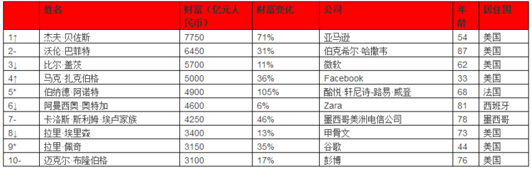 PingWest品玩2月28日报道,根据路透上海消息,胡润研究院发布了《 2018 胡润全球富豪榜》,根据榜单显示,亚马逊创始人贝佐斯以 7750 亿元财富成为世界首富;巴菲特超越比尔盖茨,位居第二;马化腾成为华人首富,全球第 15 名。《 2018 胡润全球富豪榜》上榜富豪的财富计算截止日期为 2018 年 1 月 31 日,报告数据显示,全球共有 2694 位十亿美金富豪上榜,总财富 66 万亿元,上涨31%,相当于全球GDP的13.2%, 科技行业仍然是全球十亿美金富豪的主要财富来源。