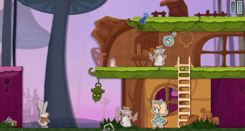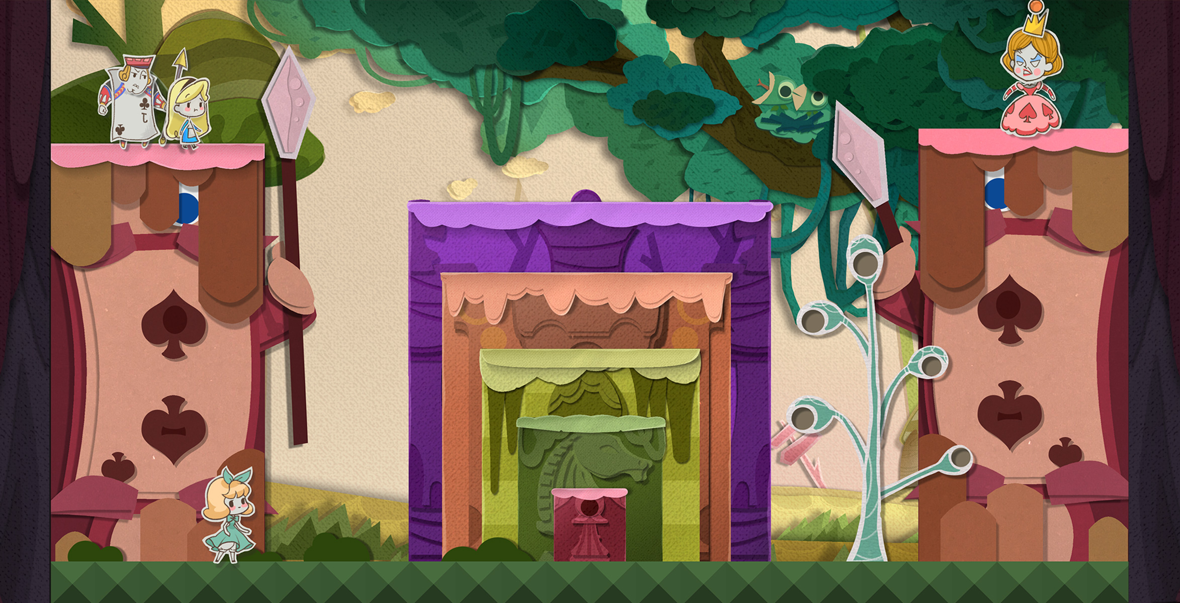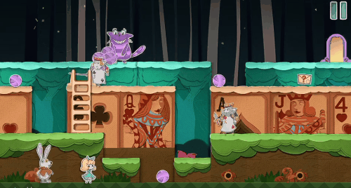 尝一遍童话故事的苦和甜游戏基本玩法是通过移动、叠加纸片来改变场景的构造,帮助安妮找到装着线索的信封,并一层层爬到目的地。而过程中的阻碍来自凶神恶煞的扑克士兵、扔毛线球的柴郡猫、还有施展黑暗魔法的鼠王。