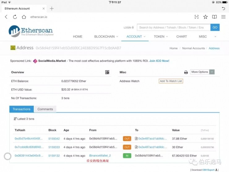 而且,给群友退币的 ETH 来自币安等交易所,时间点刚好是Ncash上市交易后的紧急提币。