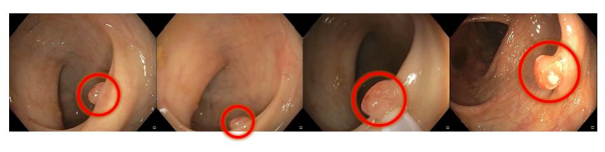 图 6:结肠镜检查视频中具有不同形状和外观的息肉。