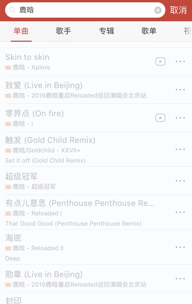云音乐上也存在部分灰色曲目,数据显示,QQ音乐曲库达到1700万,1%的占量约17万歌。目前在云音乐上韩国YG娱乐公司的歌单亮起了一部分,Bigbang经典曲目如《if you》、《let’s not fall in love》、《fantastic baby》等曲目依旧下架,独立乐团草东没有派对的所有曲目也均处于下架状态,吴亦凡、张艺兴、TFBOYS、鹿晗等流量歌手也存在部分下架曲目——显然这部分是腾讯音乐保留的1%。