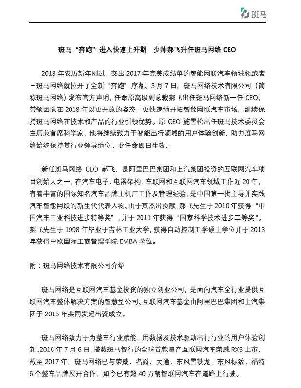 *斑马网络任命书原文