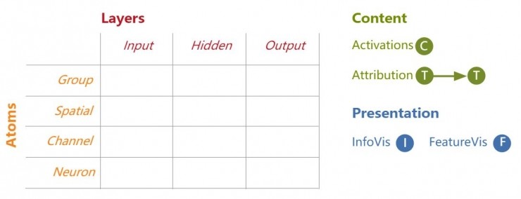 研究神经网络可解释性的技术往往都是单独研究的。这篇论文里,作者们提出了强有力的可视化界面,让读者得以把各种技术结合在一起;不仅如此,现在还可以探索合并后的空间的复杂结构。