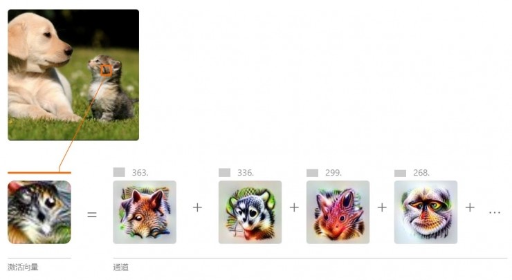 通过特征可视化,我们可以将这个抽象矢量转换成更有意义的“语义字典”。