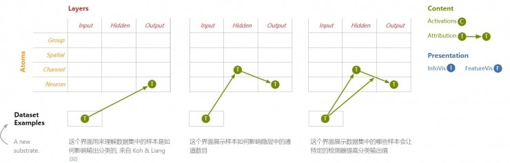 最后,这不是一套完整的模块。随着新的发现,研究员们扩大了空间。例如,Koh&Liang 提出了解数据集示例对模型行为影响的方法。我们可以将数据集示例作为我们设计空间中的另一个底层,从而成为与其他基础块儿完全组合的另一个模块儿。