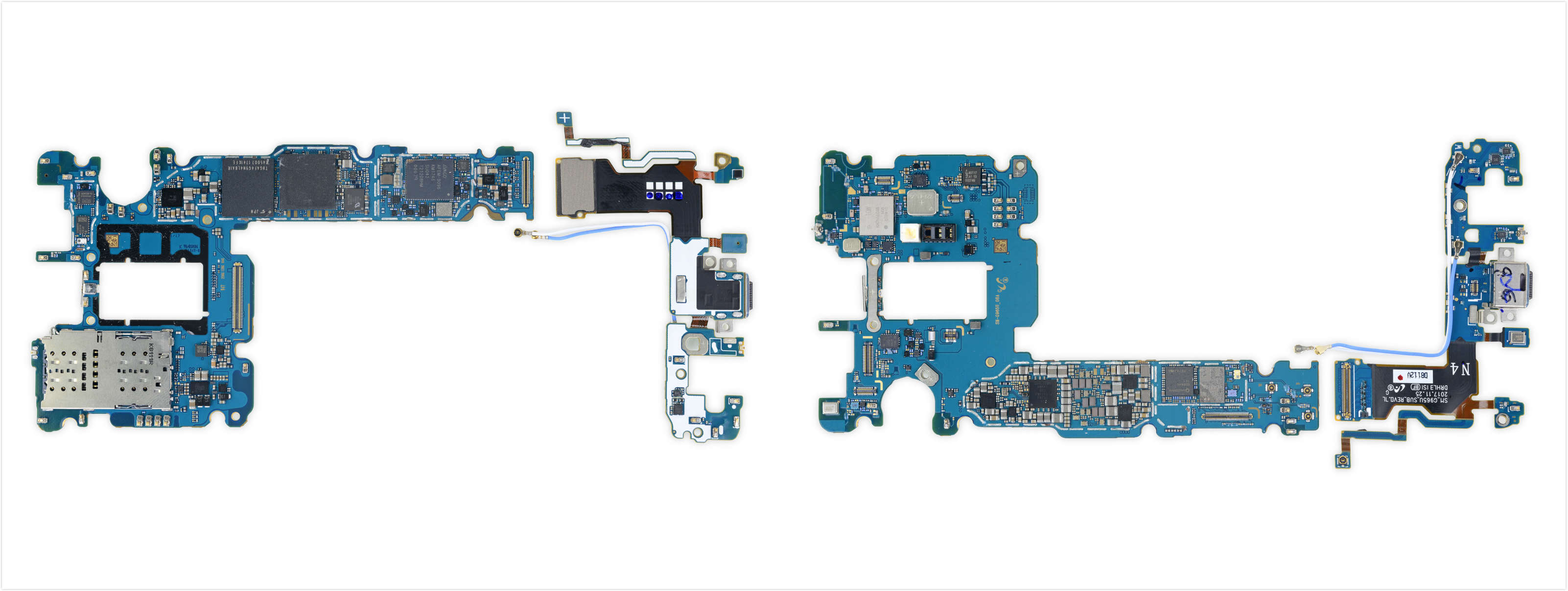 有意思的是,相较于这几乎没升级的「额头」, Galaxy S9+ 在主板则有了明显的变化,整个主板采用了多家供应商提供的元部件。