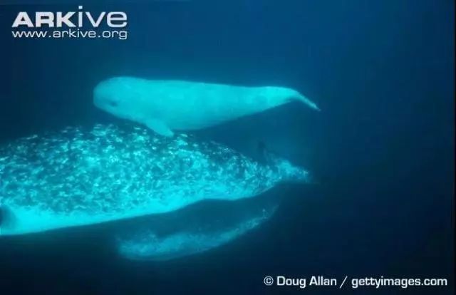 成年一角鲸为灰白色,周身散布着细密的深色斑纹,苍白而斑驳的体色,远远看去仿佛溺水漂浮的水手,因此一角鲸在英文里被称为"Narwhale"——"nār”在古诺尔斯语中有着“浮尸”的含义。