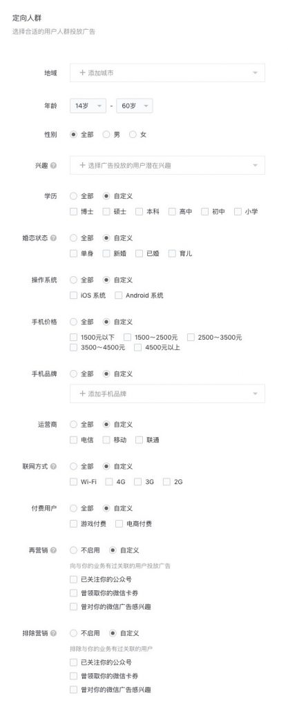同时,在定向人群这一块,可以筛选的条件非常多。
