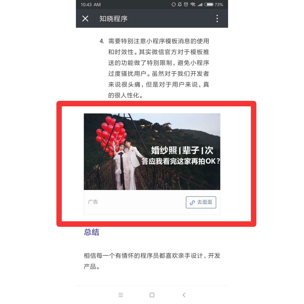 小程序广告的开放,很大程度上可以化解工具类小程序的变现窘境,也能让内容小程序,特别是知识问答、培训类小程序可以暂时停止危险的变现试验(比如内容付费、虚拟商品购买等)。