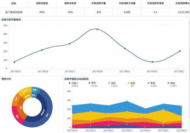 营销活动在关注复盘反馈的结果中,品牌收益首当其冲是核心指标。过往舆情监测的服务和产品从品牌贡献度、活动趋势、受众分析等维度设计了丰富的指标对活动整体效果进行评估,并没有对品牌收益进行关注。