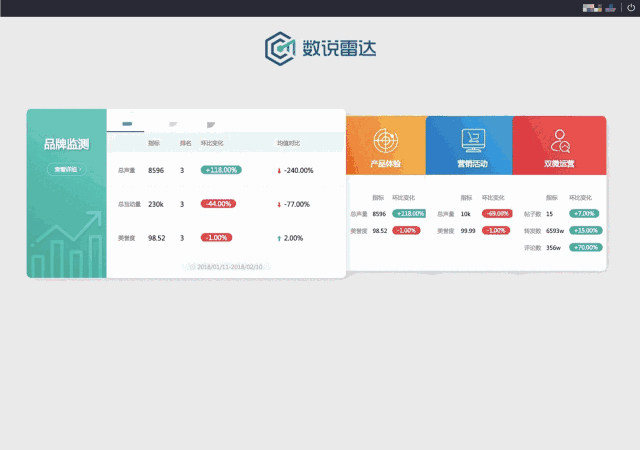 品牌监测模块以大数据品牌收益模型为框架,从用户对品牌的“认知-认可-偏好-推荐”构建数据驱动的智能决策产品。