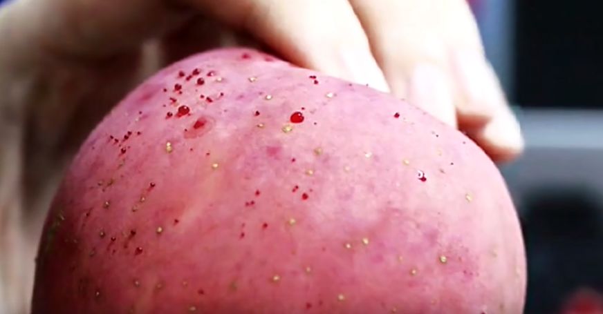 女子用热水泡苹果结果冒出“血珠” 是无良商家染色?