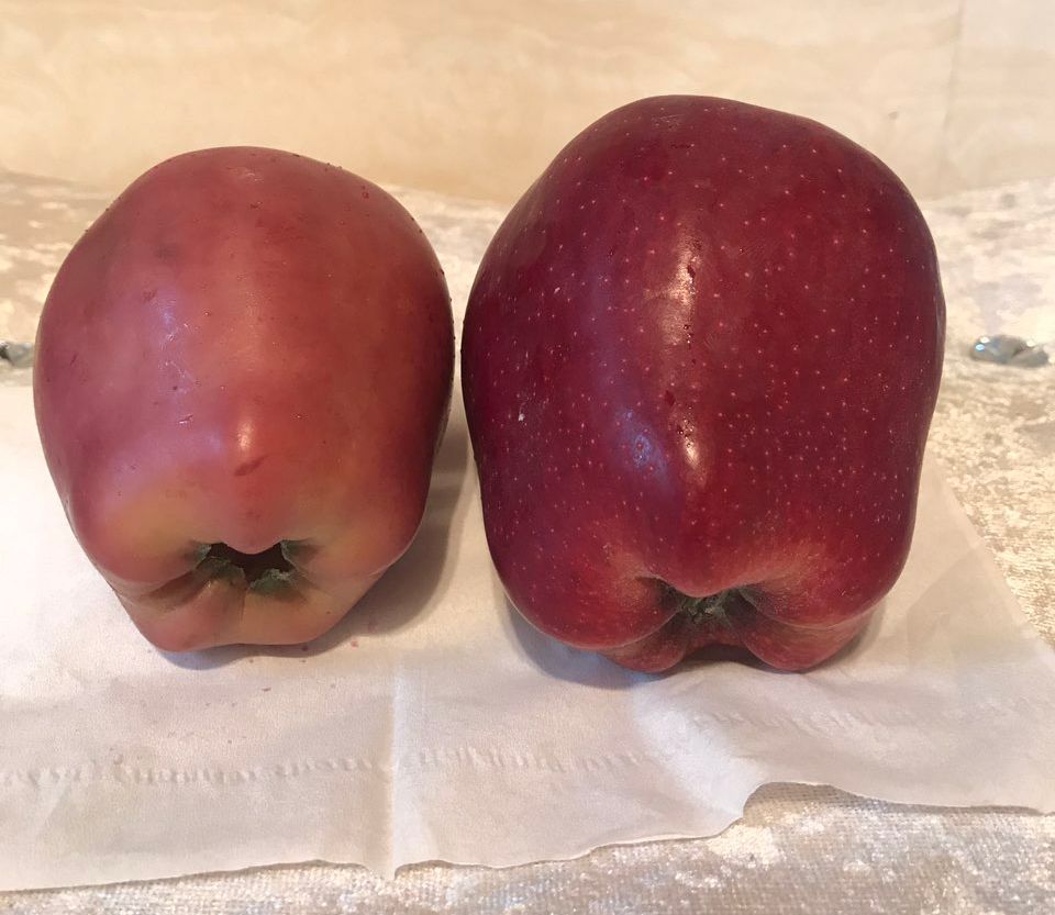平时喜欢吃水果,买的苹果都是蛇果,刚才中午饿醒,起来想直接啃苹果,又怕冷,就把苹果泡在刚烧开水的盆里,然后吃了个午饭回来,苹果就如下图……