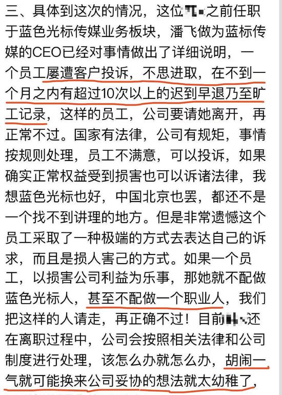 一个邮件里被描述成这样的员工,不配做蓝标人,甚至不配做职场人的员工,蓝标其他部门也能接受吗?