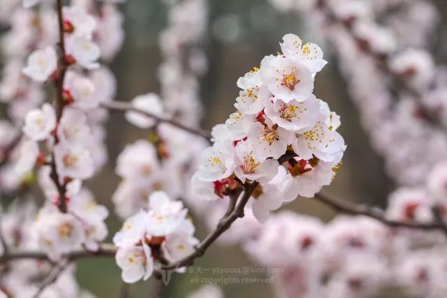 开头两幅图,上为杏花,下为樱花。