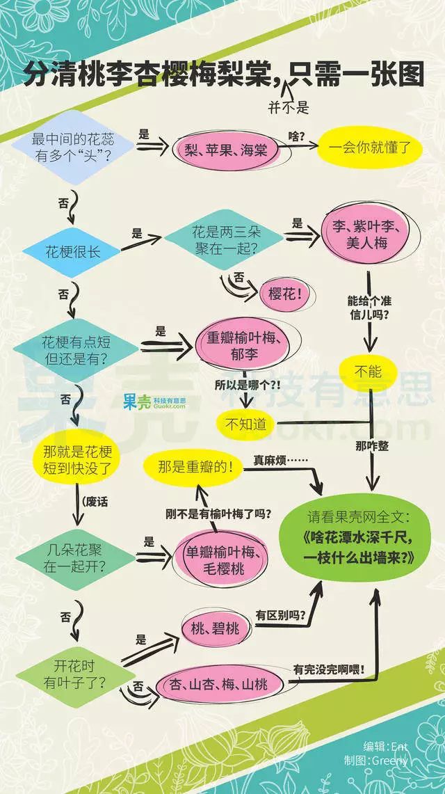 眼下气温回暖,你会在路边树上看到很多五片花瓣、辐射对称的白花、粉花、小红花……要说长得像,好像红的粉的、有叶的没叶的,区别很大;要说它们究竟不同在哪……救命啊!!!