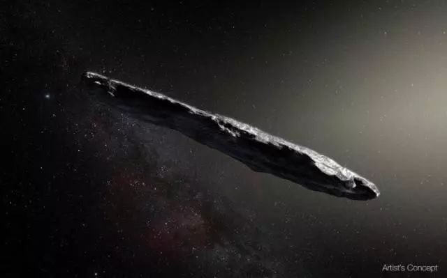 非要总结归类的话,也不是完全无迹可寻,最常用的标准就是长宽比啦。有些小天体长宽比小些,像个苹果;而有些长宽比大些,像个芒果。更夸张的就是去年新发现的第一颗来自太阳系外的星际来客‘Oumuamua,长宽比高达10:1,假想图长这样: