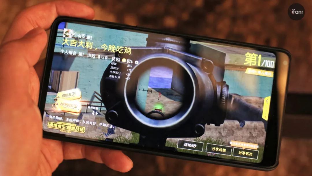 高画质“吃鸡”毫无压力,游戏运行流畅,没有遇到卡顿现象,场景加载也非常迅速,半小时下来也只是温热,最后“吃鸡”成功,这颗处理器在小米 MIX 2S 游戏方面的调教也较为到位。