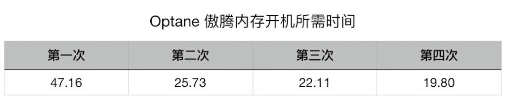 我们反复开关机,记录从按下电源按键到系统显示 Windows 10 桌面的全过程,如下表所示,用时从最初的 47 秒多,直至稳定在 20 秒附近。