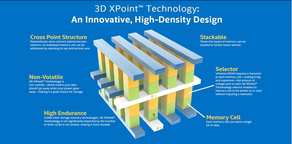 一句话,3D XPoint 是一项最新的存储技术,相对传统闪存,在速度、密度、耐久度、可靠度上都有提升,且还在不断技术升级中。