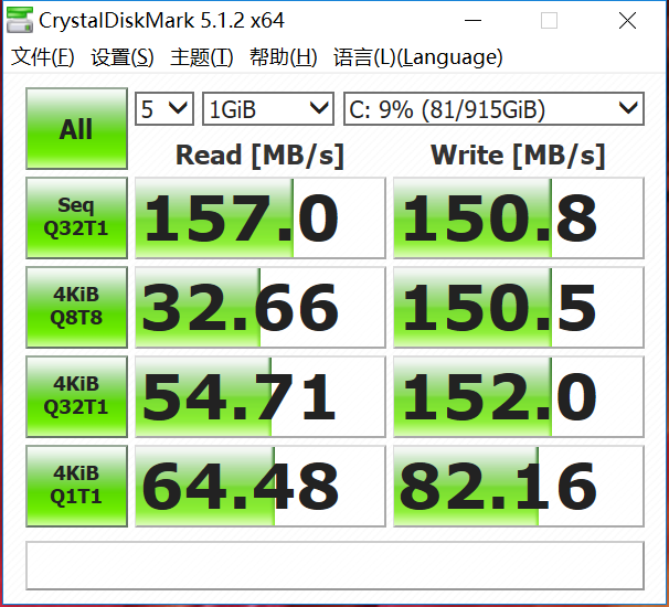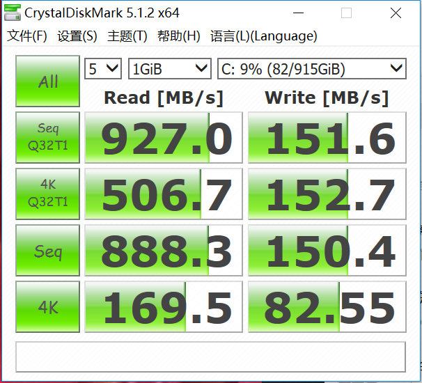 我们使用老牌磁盘测试软件 CrystalDiskMark 进行了反复得读写测试,第一次测试的结果可谓惨不忍睹,此时可以看出傲腾内存并未发挥作用,基本上各项数据反映的都是单一机械硬盘的性能,注意此时硬盘的读写性能最高只有 157MB/s,而在反复进行 3 次测试之后,突然看到硬盘读取性能的飙升,读写性能直接来到 900MB/s 之上,虽然相对当前最快的 NVMe SSD 性能还有差距,但相对之前的机械硬盘几乎在读取性能上提升了 6 倍。