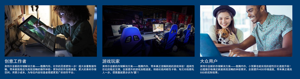 看到这相比你也明白了,傲腾内存最适合那些有着大容量存储需求,同时在一定时间段内重点完成一类相似事务的 PC 用户,比如重度的办公用户,影视后期制作以及游戏玩家等。
