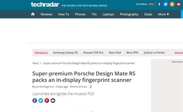 华为MateRS保时捷设计发布当天,就凭借极致设计和顶尖性能吸引了众多外媒争相报道。 英国知名科技媒体Techradar认为,华为MateRS保时捷设计是真正的超高端手机 。