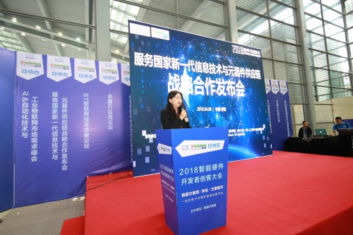 2018 年 4 月 9日,“服务国家新一代”信息技术与元器件供应链战略合作发布会在深圳会展中心举行。我爱方案网CEO刘杰、远大创新总经理马宁、我爱方案网联合创始人王勤、中国电子信息博览会组委会秘书长陈雯海、深圳市微钠研究院投资总监吴海宁、我爱方案网副总裁许波等人出席本次会议。