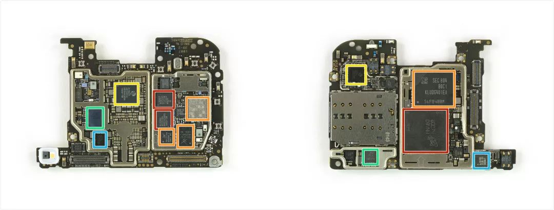 我们先把关注点短暂地放在那块小主板,这上面集成了麒麟 970 核心、镁光 6GB LPDDR4 的运存、三星 128 GB 闪存、恩智浦的 NFC 控制器等重要的零部件。