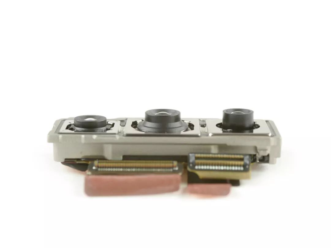 虽然这是一个「徕卡三摄」的镜头模组,但华为只为其设计了两条排线,4000 万像素的主摄像头和 2000 万像素的黑白摄像头共享一条排线,而另外那颗 800 万像素的长焦摄像头则独享另一条排线。