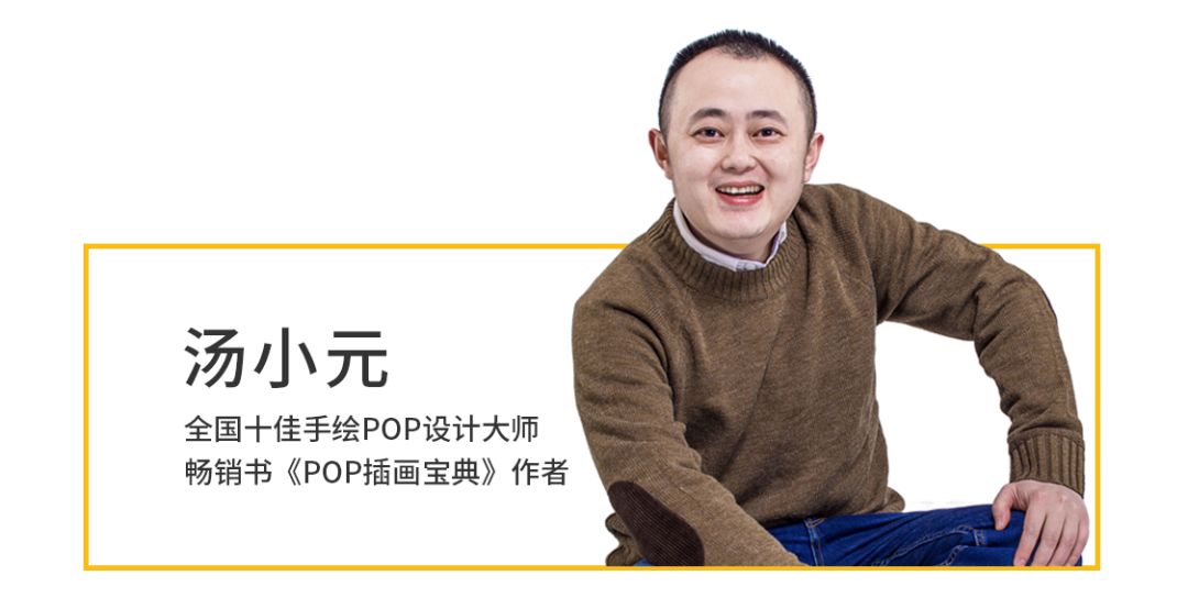 这次我们请到了全国10佳手绘POP设计大师汤小元,他曾参与设计李开复的创新工场招募创意视频,还和李冰冰一起进行“地球一小时”的前期宣传,已经帮助超过10万人入门POP手绘。