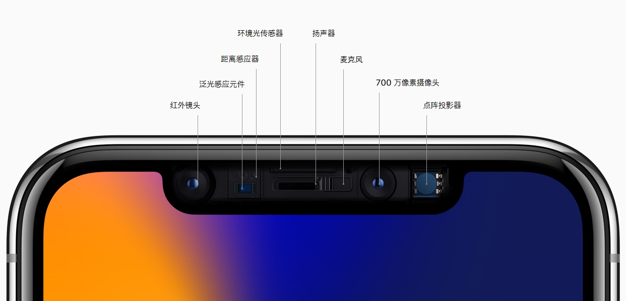 相信大多数机友都知道,iPhone X 之所以采用“刘海”屏设计,其实这是一种折衷或妥协的方案,由于 iPhone X 移除了集成指纹传感器的 HOME 键,苹果很早便计划在“刘海”上做文章,特别是加入 3D 面部识别模块,以实现面容 ID 功能。因此,加上原有的前置摄像头和听筒等零部件,整片“刘海”的面积固然不小。