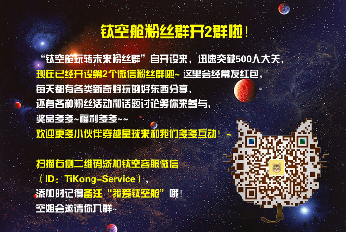 搜索微信号:钛空(ID:TiKong-Life),或扫扫二维码进入钛空生活