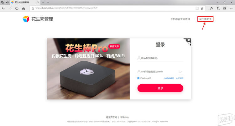 首先打开花生壳官网 http://b.oray.com,下载花生棒助手。