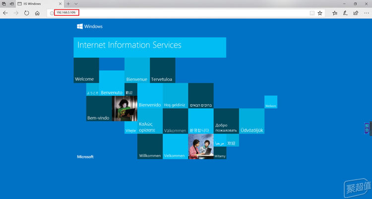 打开浏览器,输入本机IP地址:192.168.0.109,就可以访问IIS中的默认网站了。