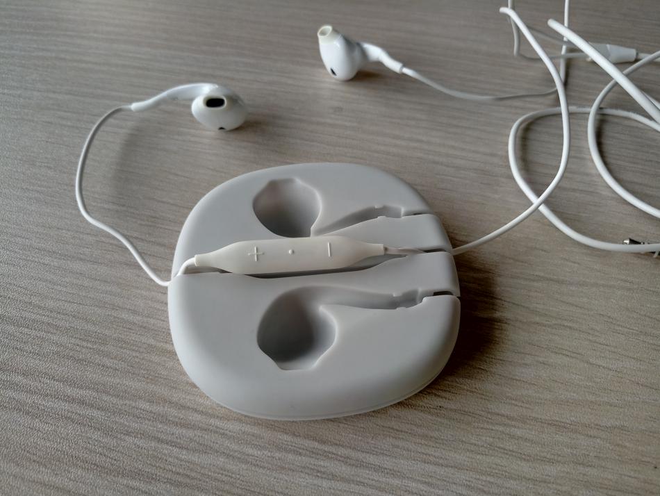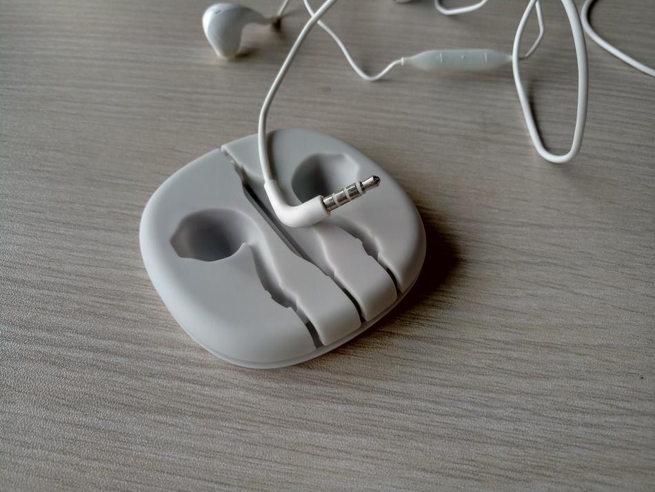 透明的盒盖,搭配弧形的机盒,圆润型的设计理念,耳机主体收纳在柔软的灰色硅胶集线器,收纳便捷,拆封和整理都十分方便。
