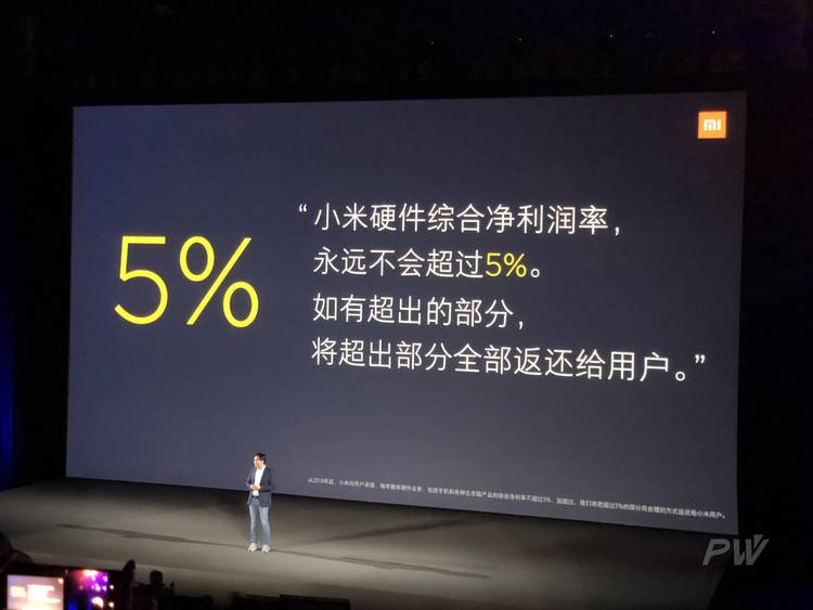但这同样不是重点,重点是雷军在这场演讲中宣布,“小米硬件综合净利润率,永远不会超过 5%,如有超出的部分,将超出部分全部返还给用户。”