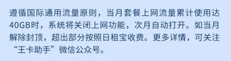 当用户当月的套餐上网流量累计达 40GB 时,系统将自动关闭上网功能,直到次月才能恢复。